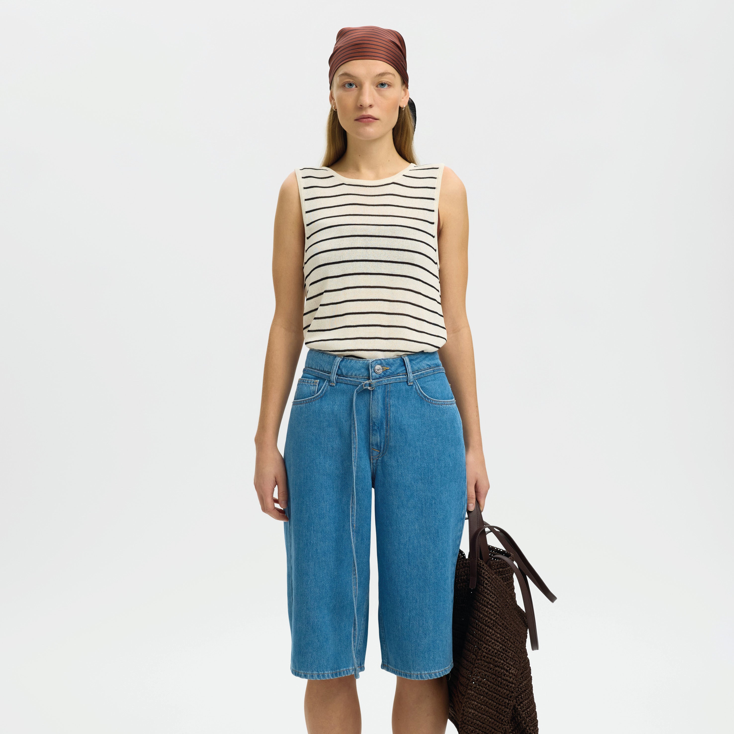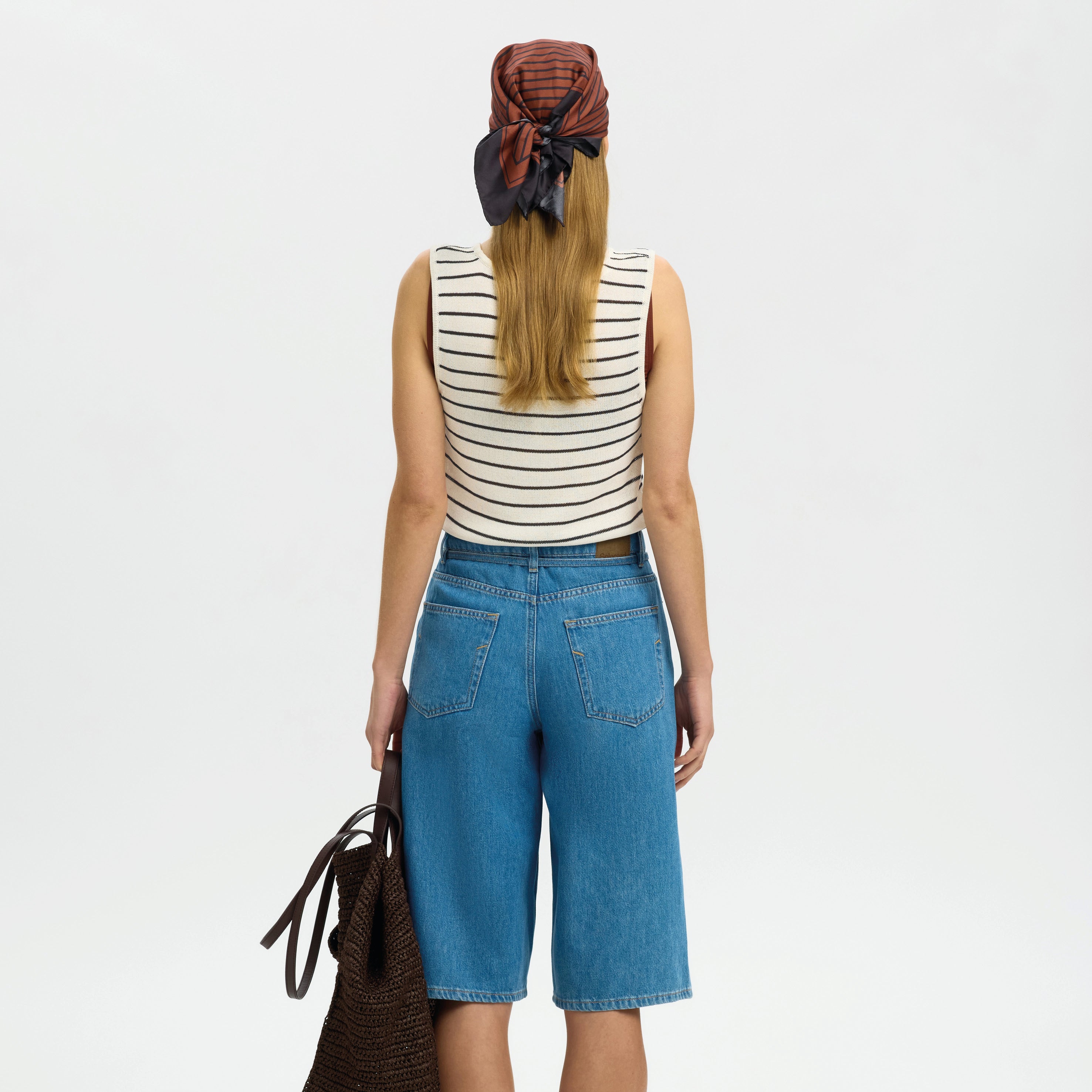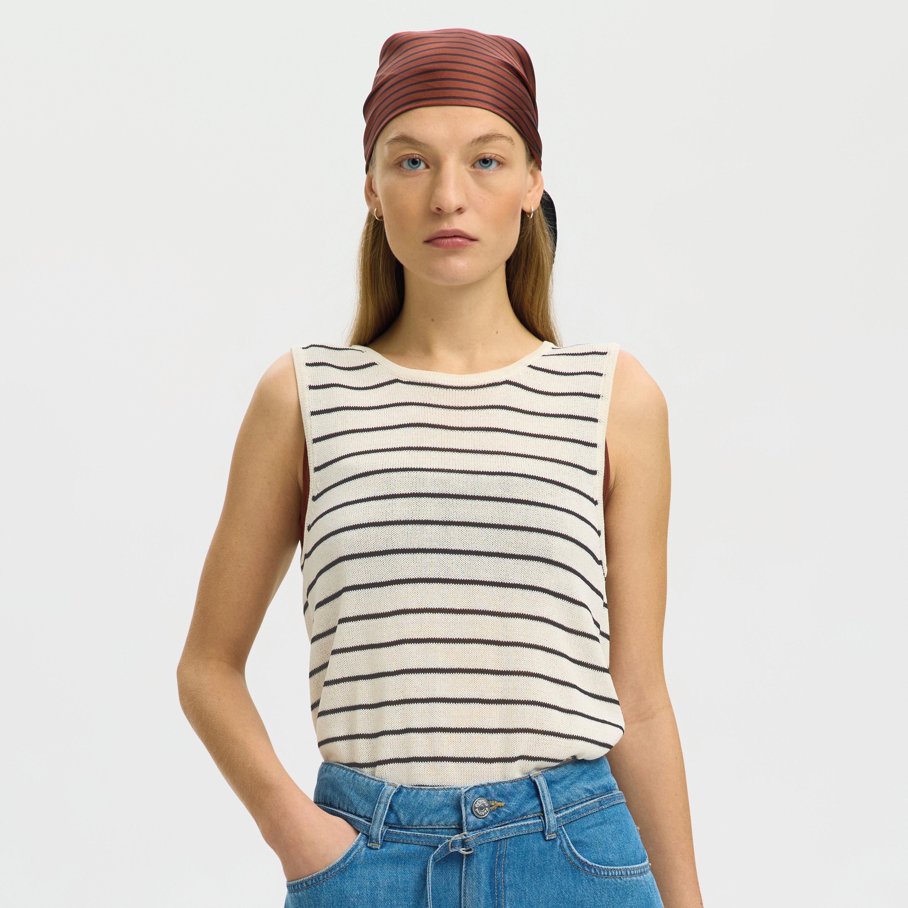 The Selected Femme Birch Stripe Moon Knit Top is a classic knitted tank top that will become a summer staple. With a round neck, sleeveless design in thin knitted fabric, its perfect to layer or to wear on its own.