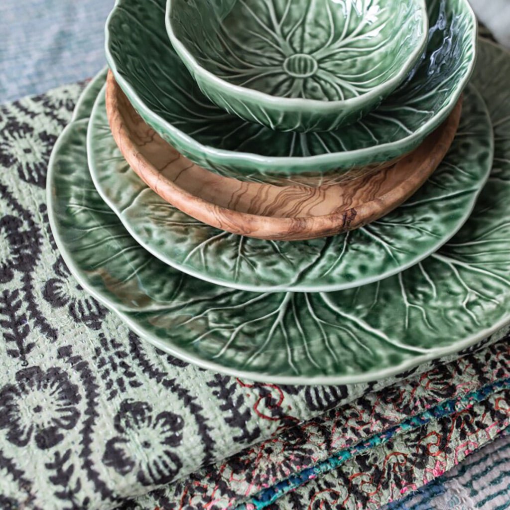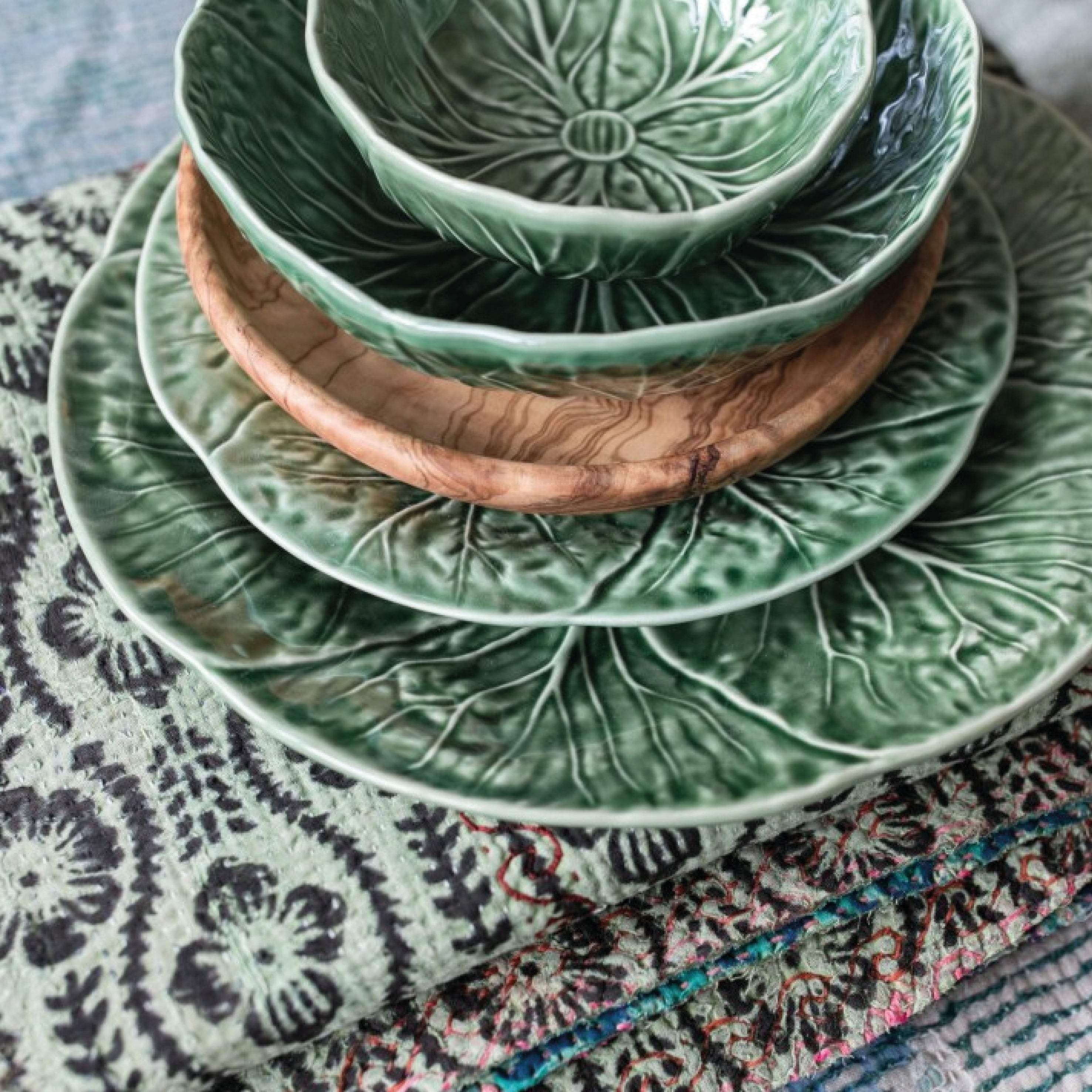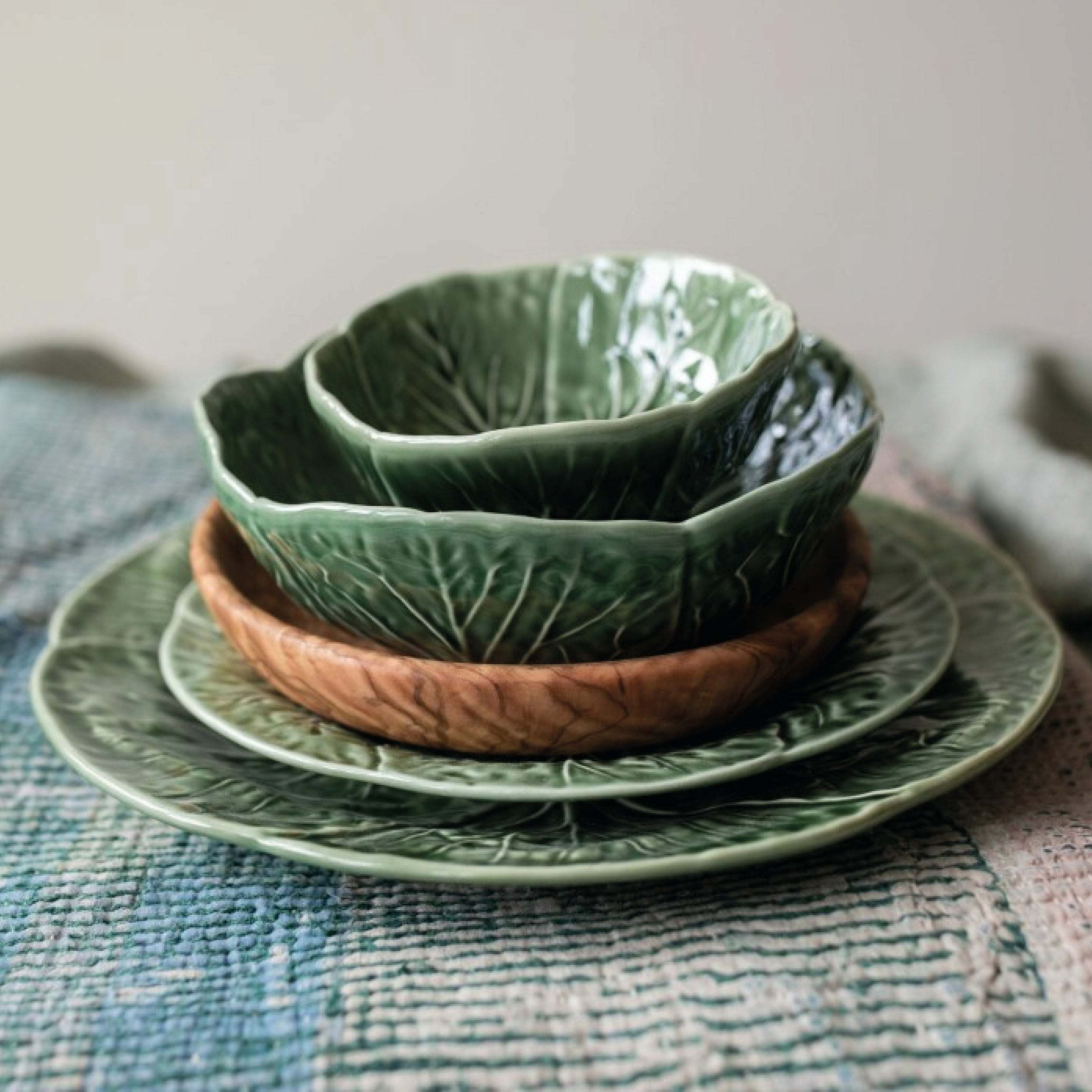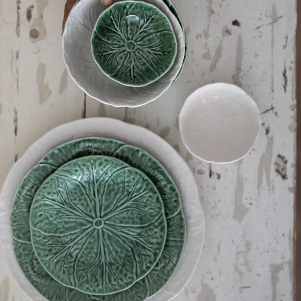 Imagine fresh fruits presented on this cabbage leaf shaped Bordallo Green Dessert Plate. Besides a perfect display for cakes and desserts, they will make your table setting joyful and festive. This charming dessert plate is cast in a traditional mould and is glazed following every vein. Produced and inspired by Bordallo Pinheiro in Portugal, where tableware has been designed since 1884, with the collection being established as an important example of 19th century Portuguese cultural heritage.