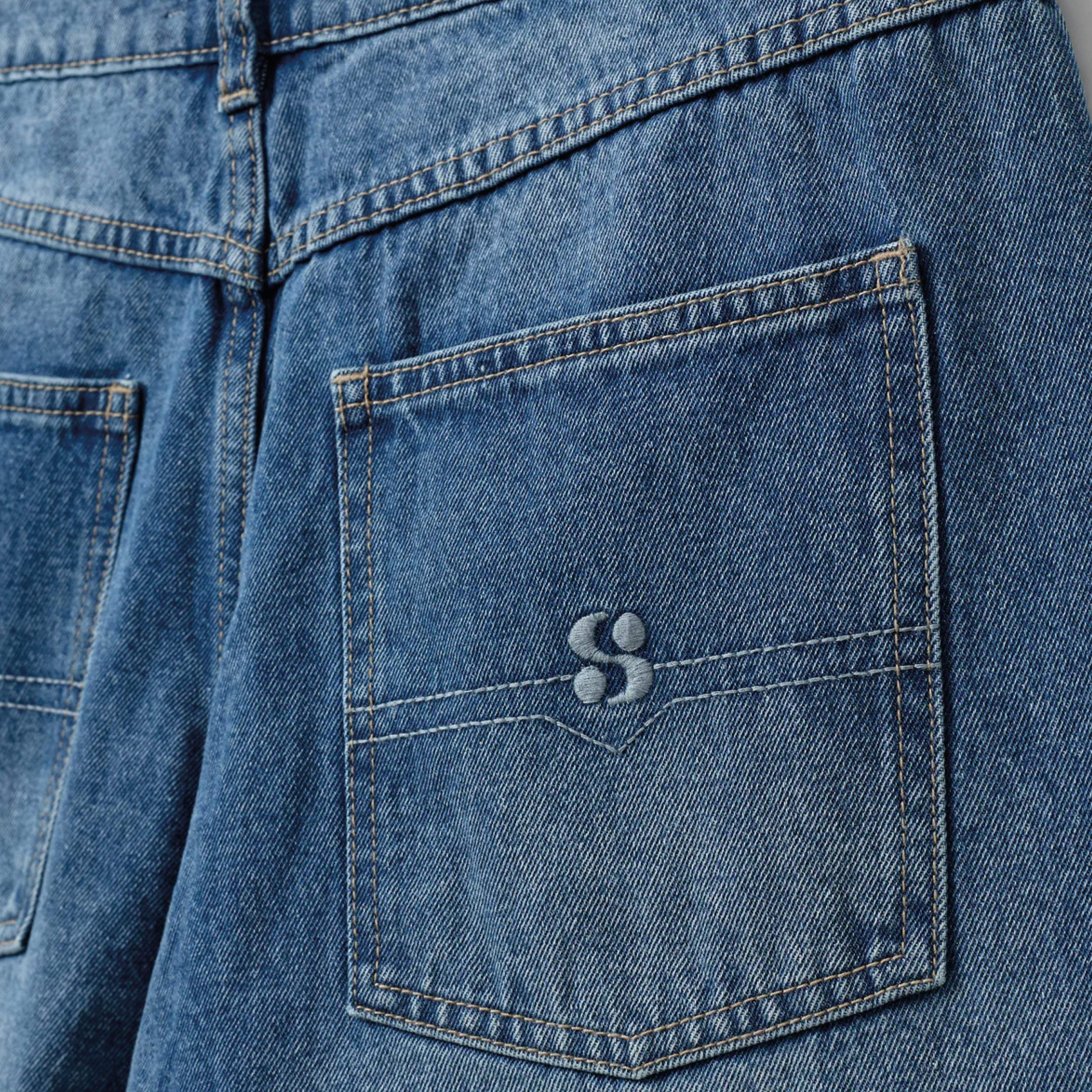 Denim Blue Stoke Oversized Shorts