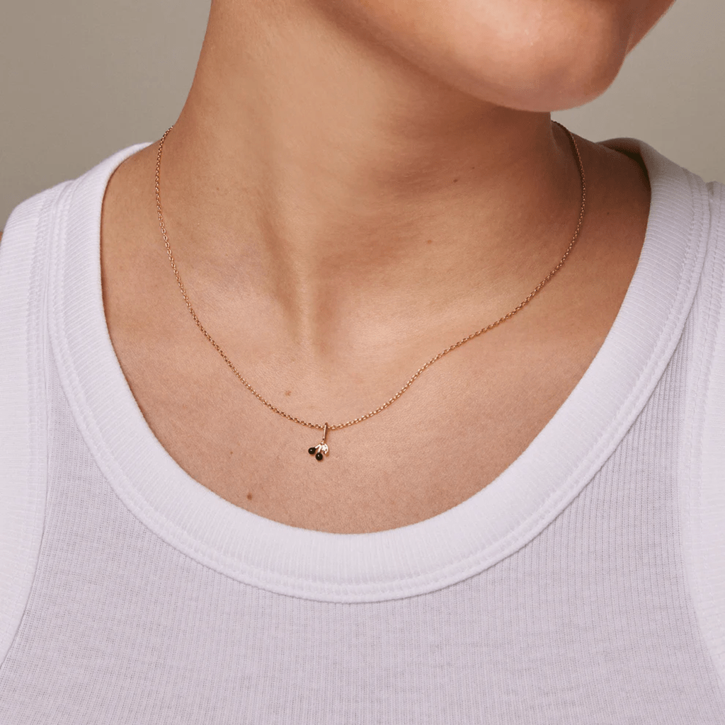 A fine chain necklace crafted from 18k gold-plated sterling silver from women's accessories brand, Enamel Copenhagen. Simple yet elegant, this beautiful necklace features a delicate dark green cherry detail to add some fun to your jewellery collection. Layer with other necklaces or wear on its own for a chic look.