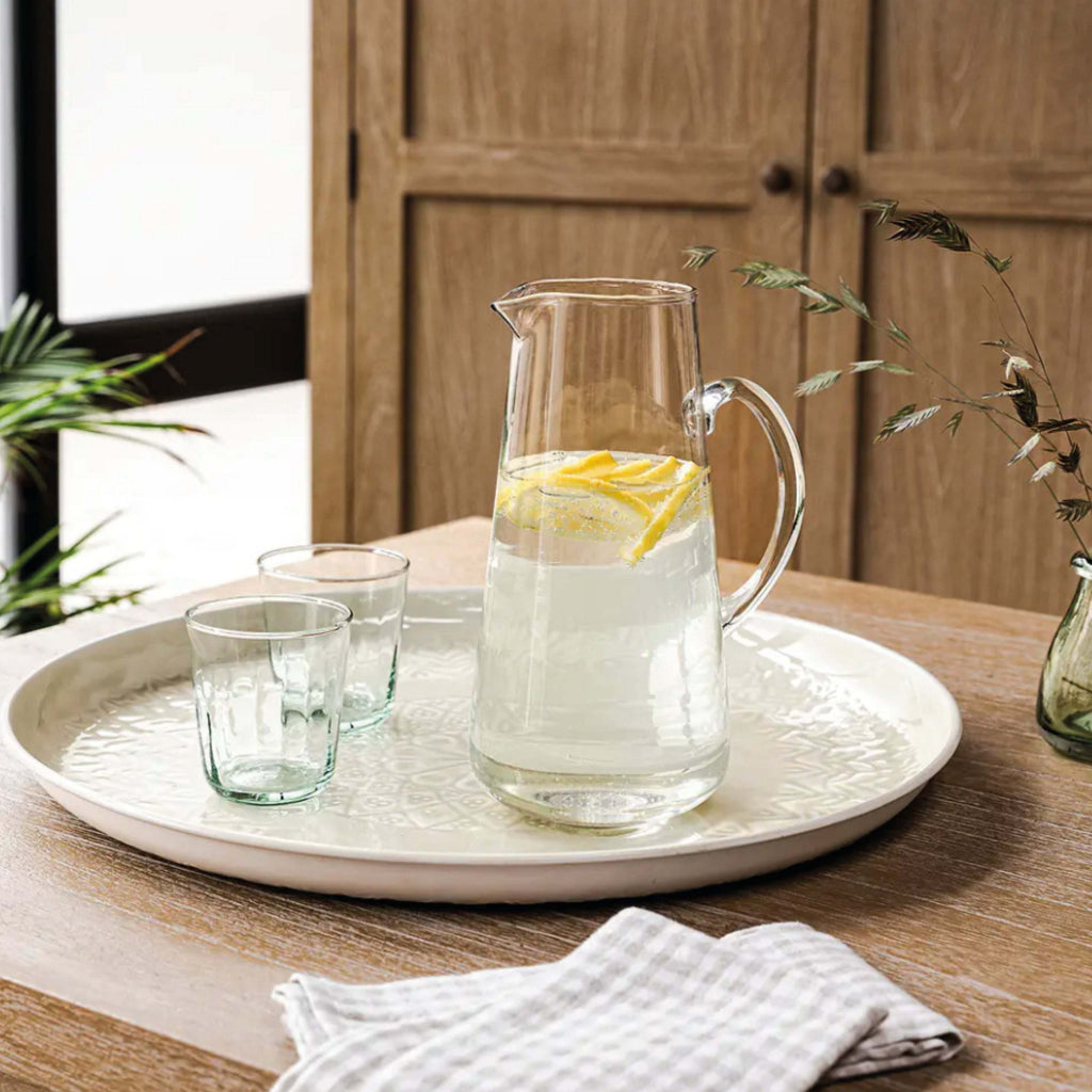 Stylish in its simplicity, the Fonthill Glass Jug has an elegant, tapered design crafted from mouth blown, hand finished recycled glass.