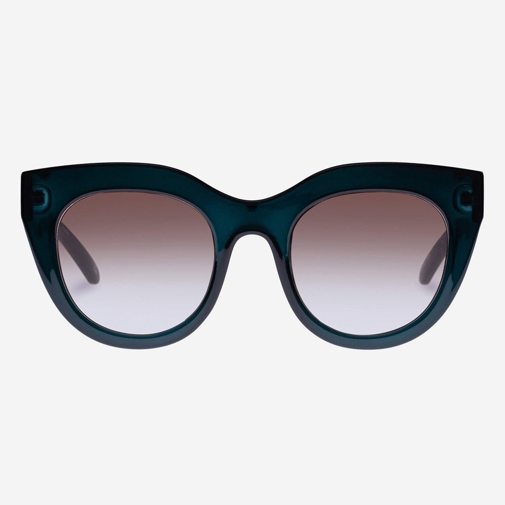 A favourite style of Meghan Markle and Olivia Palermo, the Le Specs Air Heart Emerald Sunglasses is an iconic sunglass style. With oversized and dramatic proportions reminiscent of a cat eye, the style is designed with a thick frame and luxurious metal top bar inlay, then fitted with premium zero base smoke flat lenses. The perfect statement sunglass to suit all face shapes.