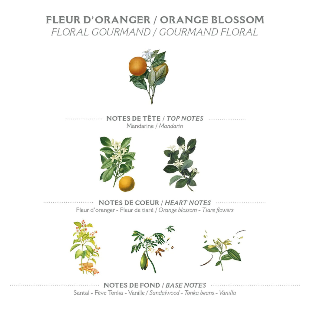 A lively, tangy floral fragrance with Absolue de Orange Blossom. After an initial burst of botanical petit grain, a joyful, addictive Orange Blossom reveals sunny, generous heart notes. Harvested in the early spring, the Orange Blossom exhales a uniquely sunny, bewitching scent.