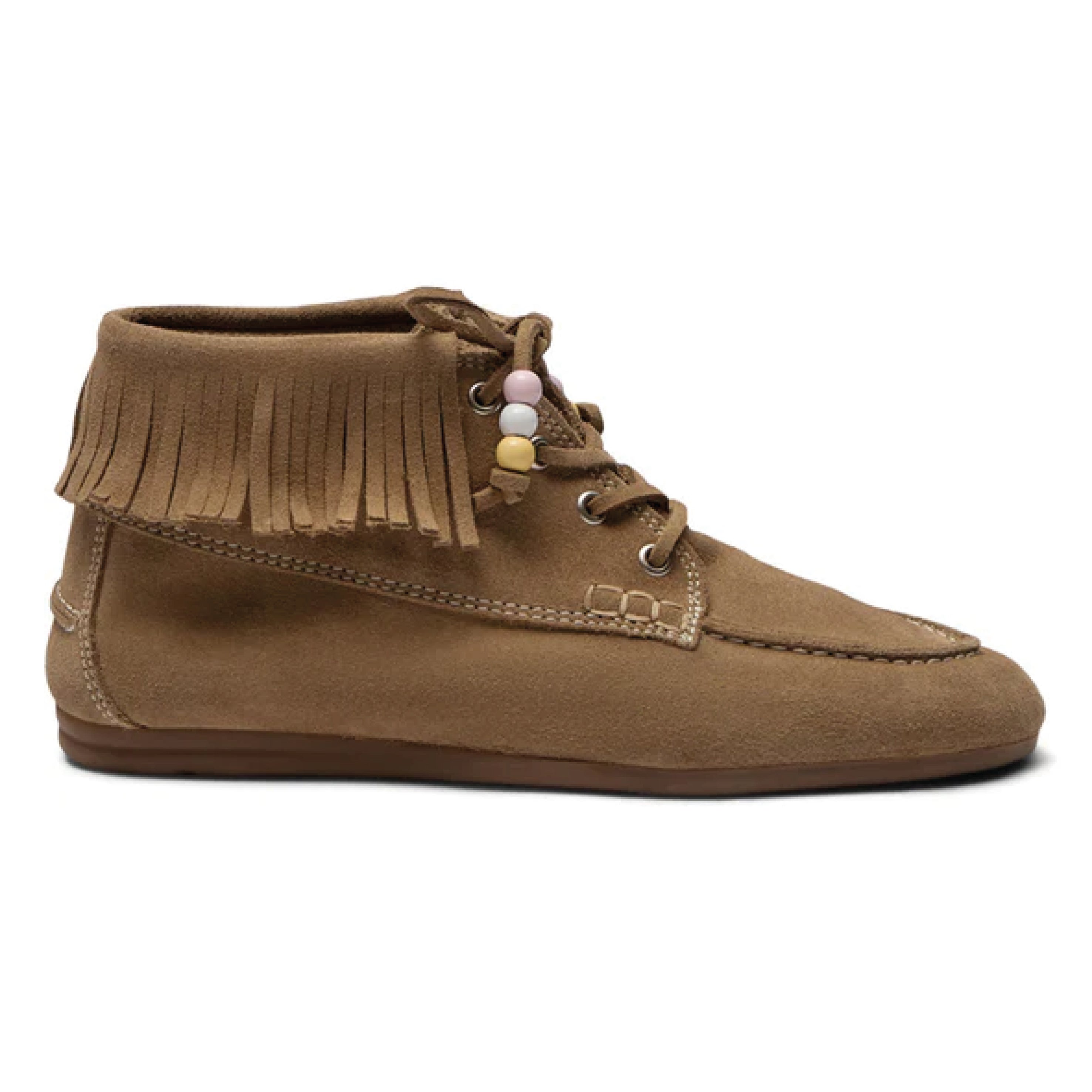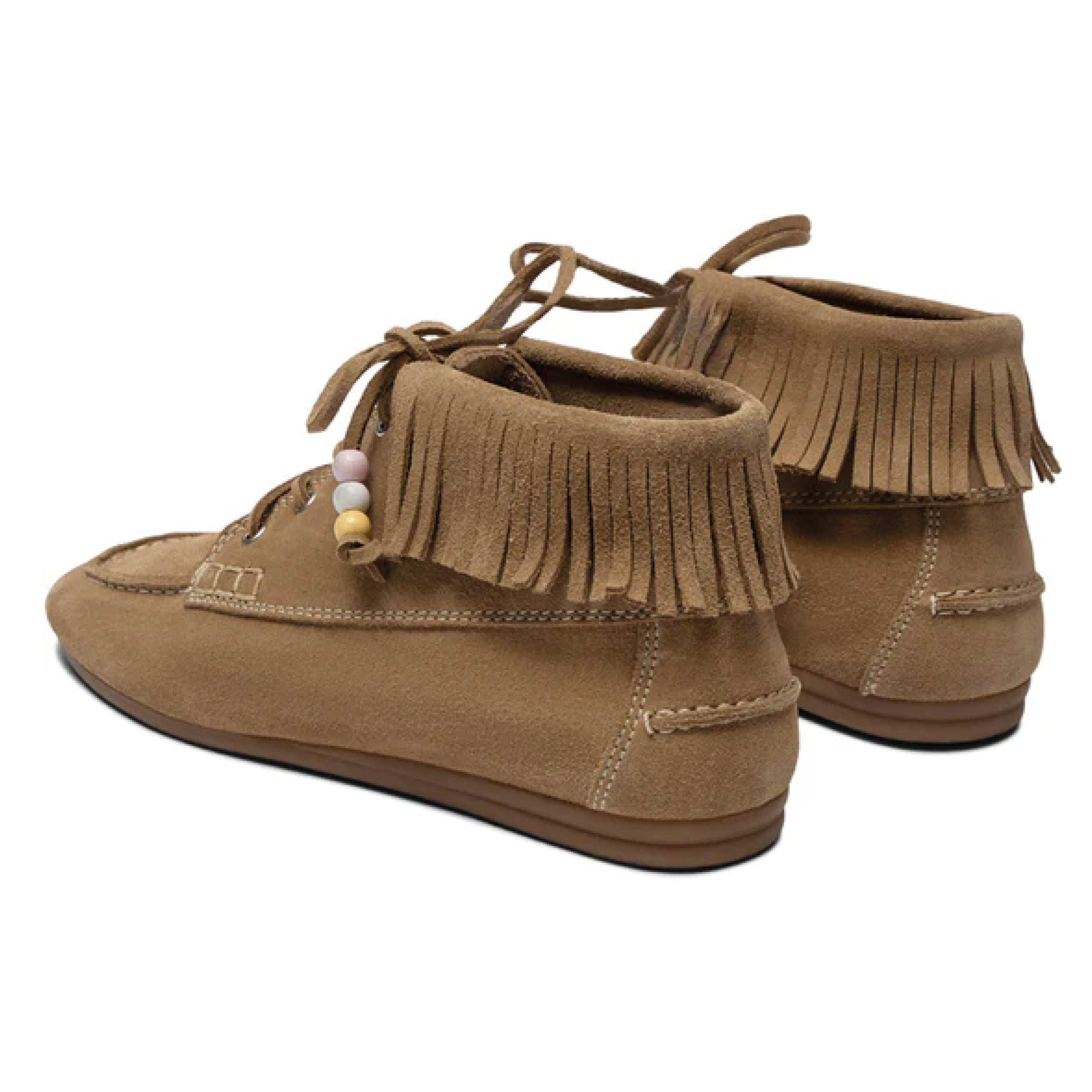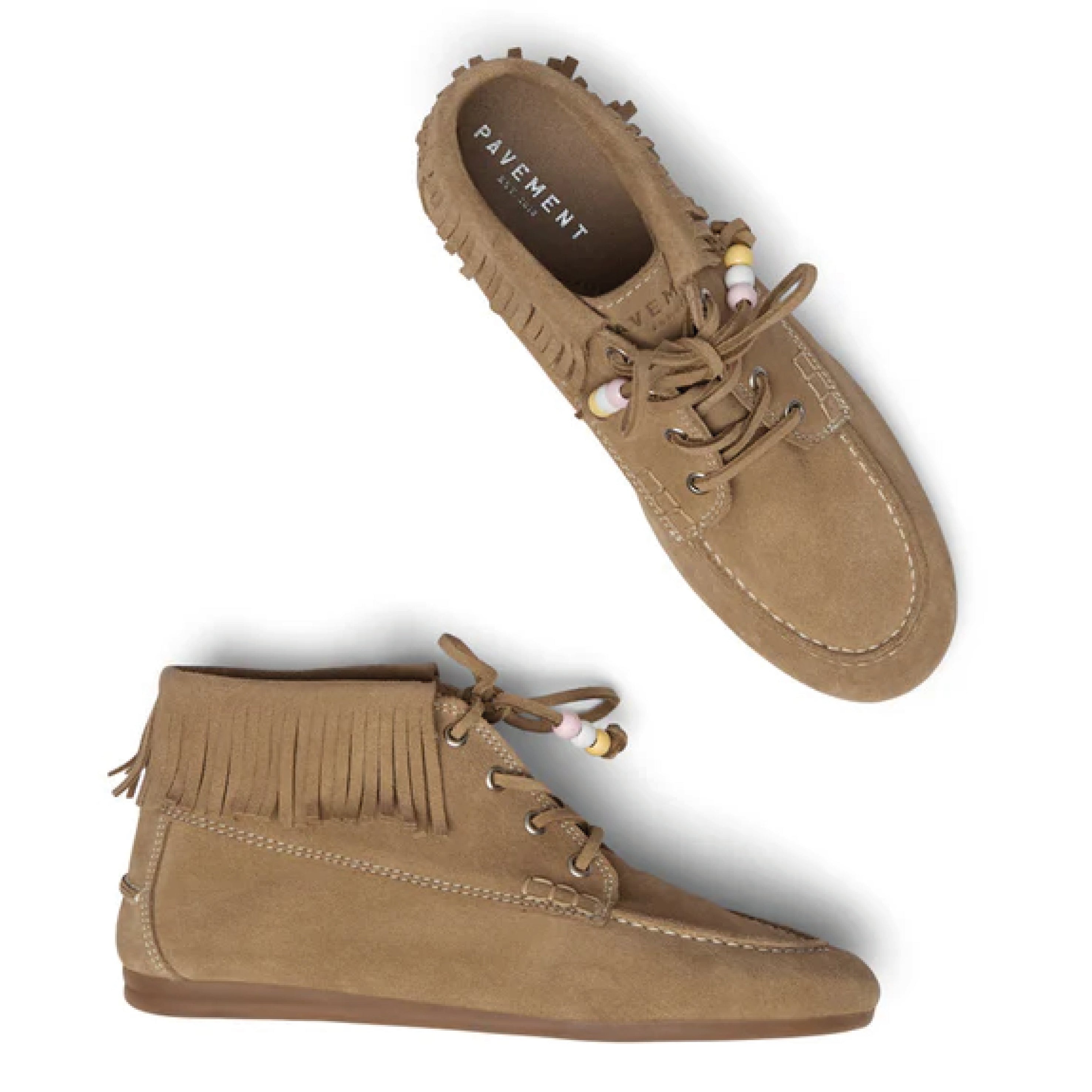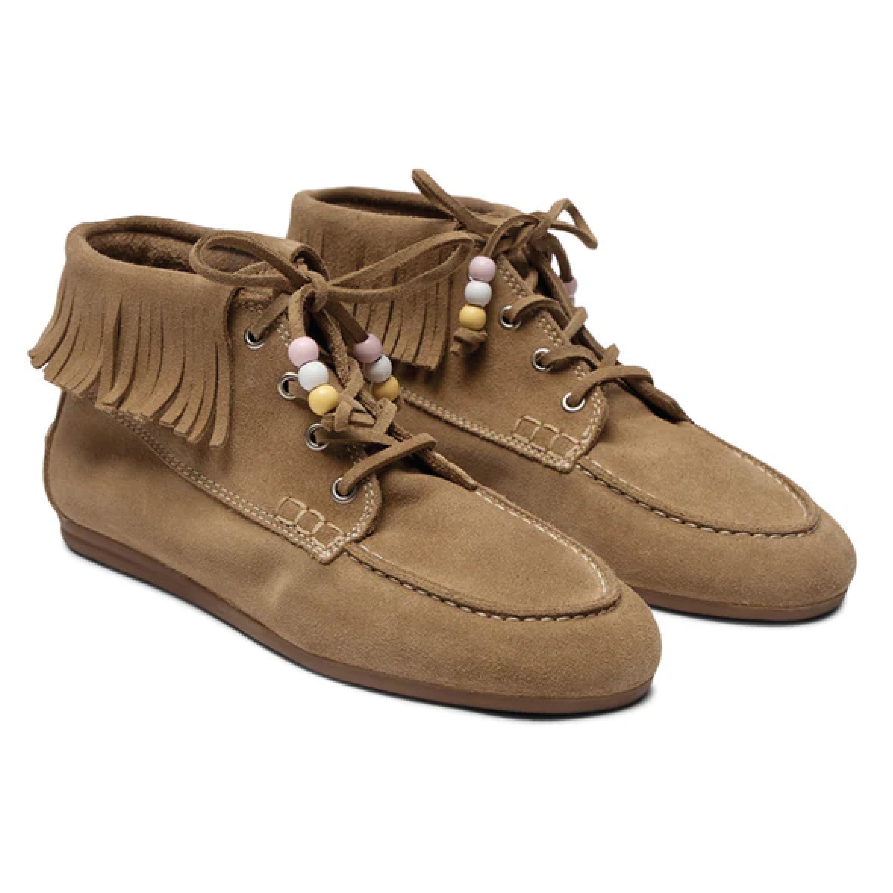 The Pavement Mushroom Suede Marin Fringe Boots are inspired by the iconic Marin Loafer. Handmade in Portugal, in soft mushroom suede with sturdy rubber sole, beaded detailing and fringe edging.