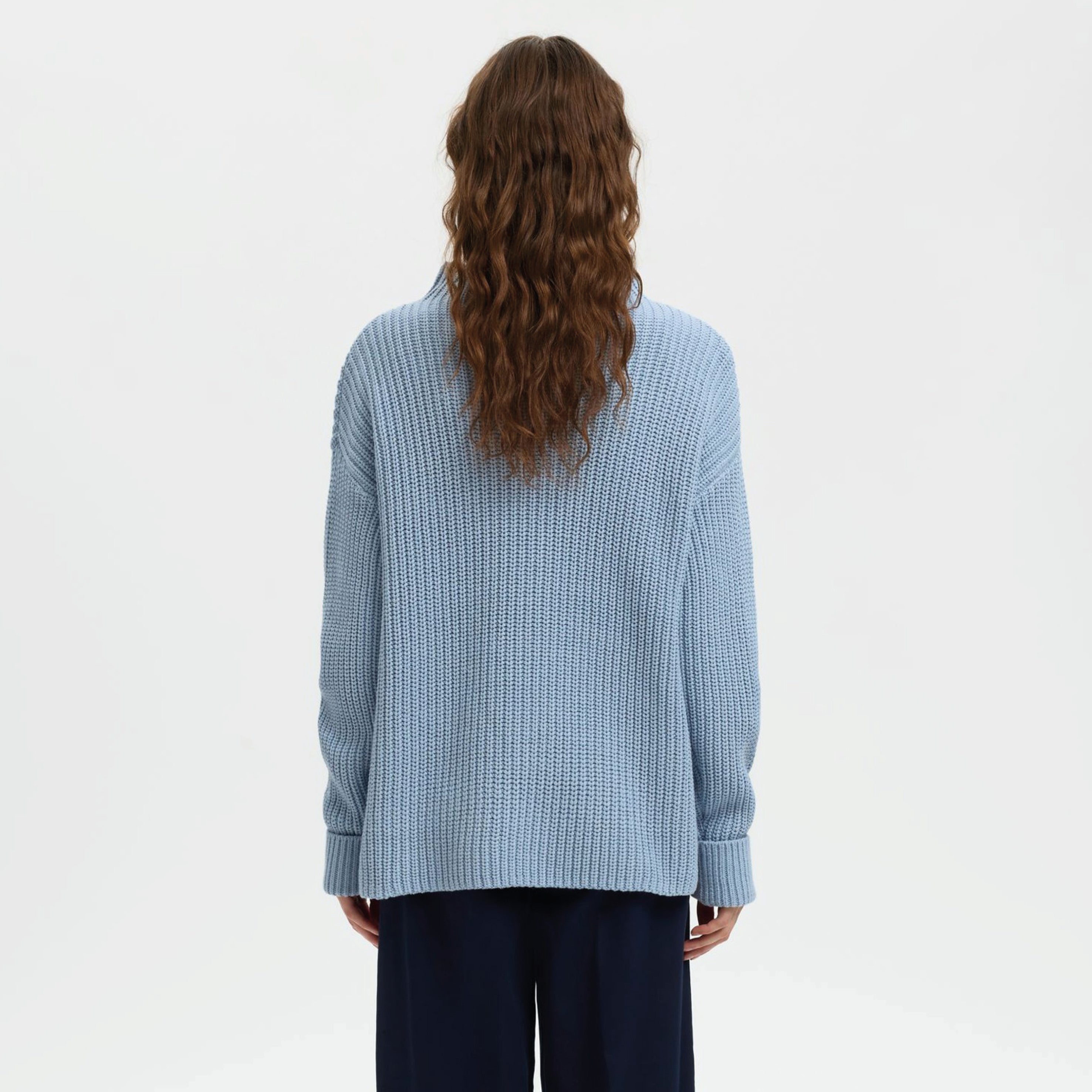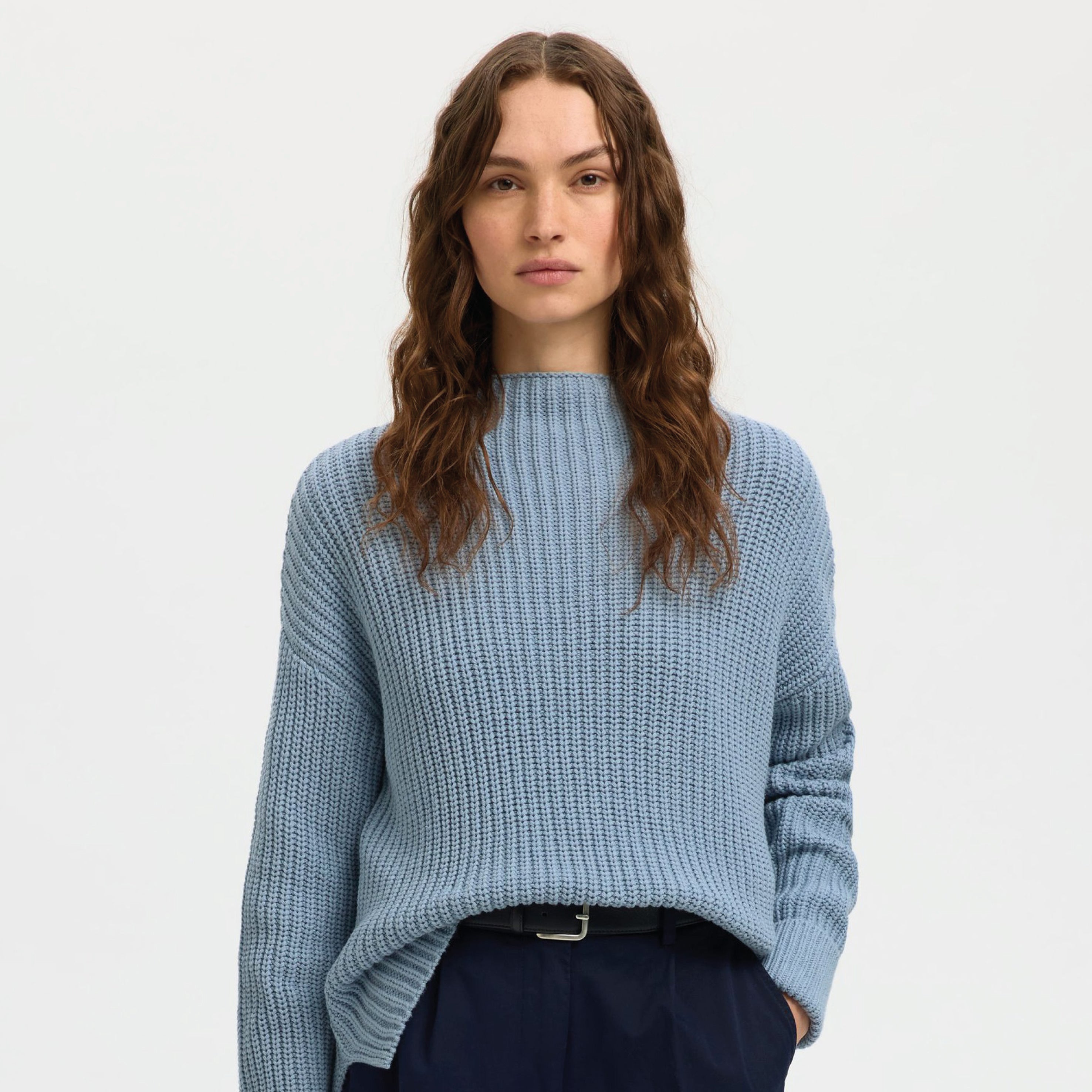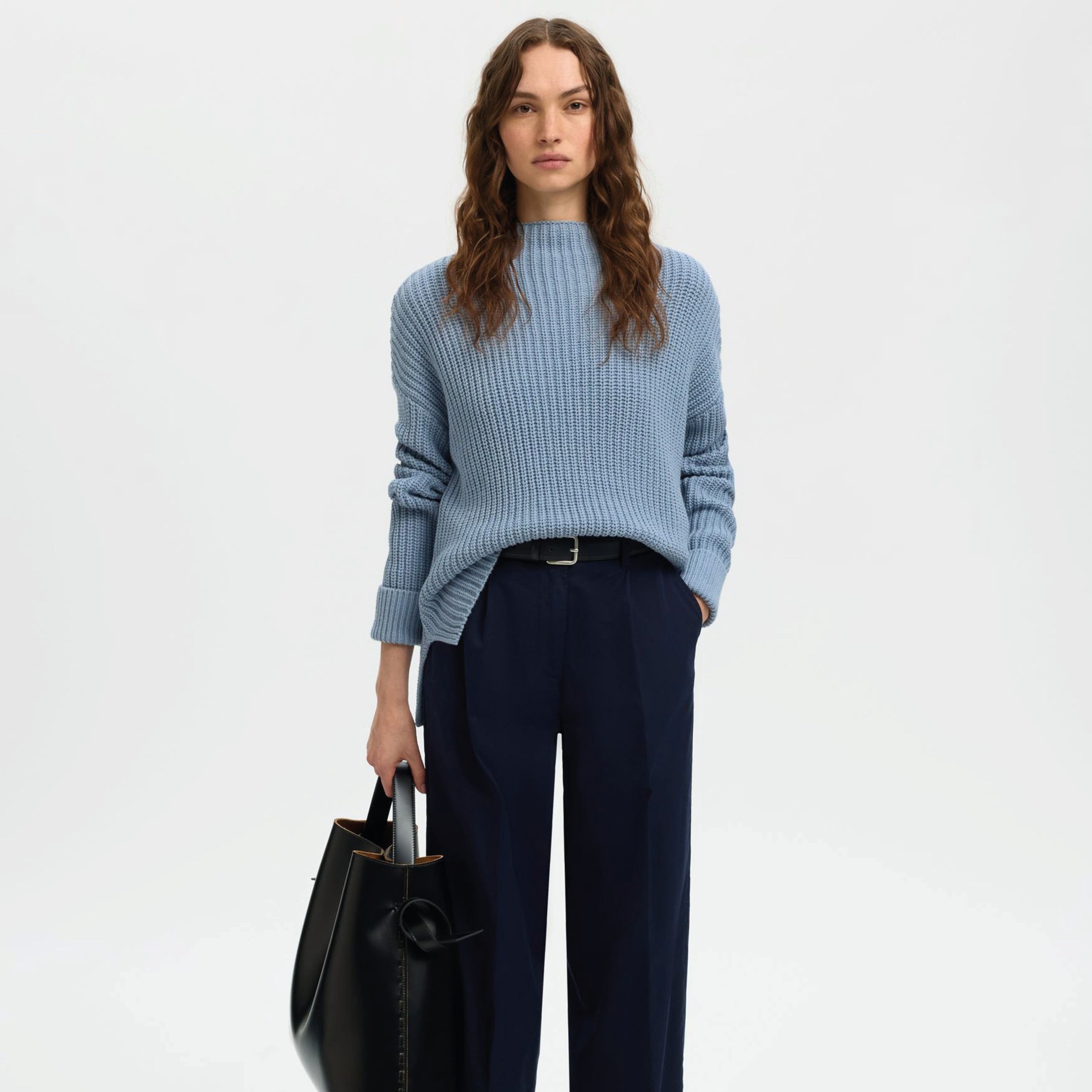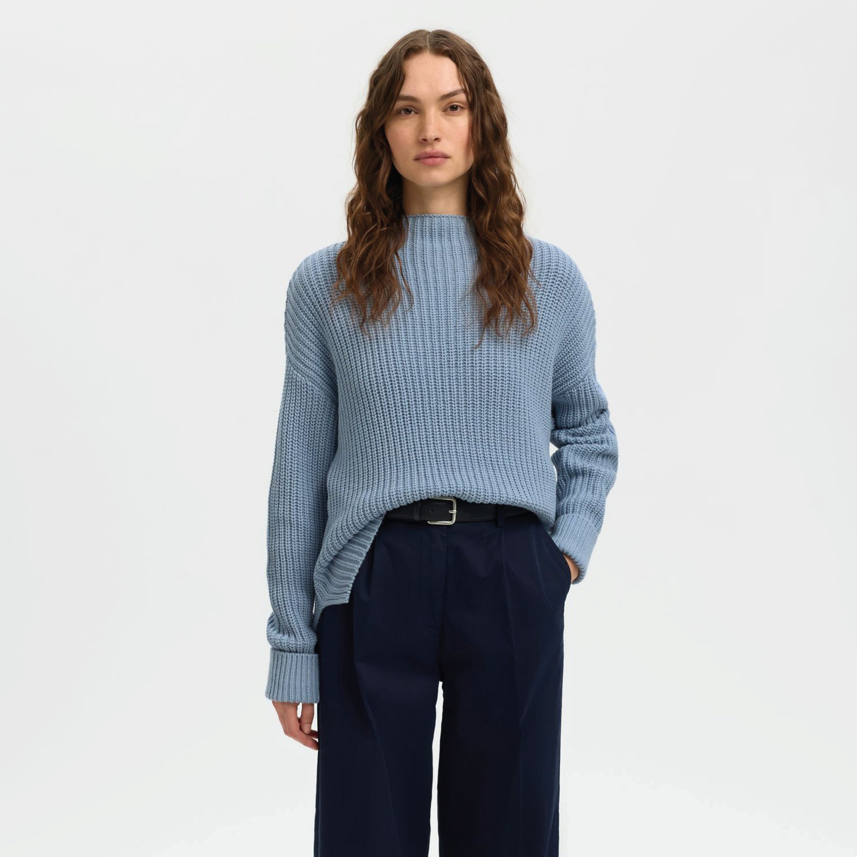 It's time to update your knitwear collection, and what's better than cosying up in an oversized jumper? The dropped shoulders give this Selected Femme Selma Dusty Blue Knit a super relaxed look that complements the turned-up cuffs and slouchy effect of the high-low hemline. The wide funnel neck looks chic and keeps you warm at the same time. Style yours with mom jeans in a dark wash and a pair of chunky trainers.
