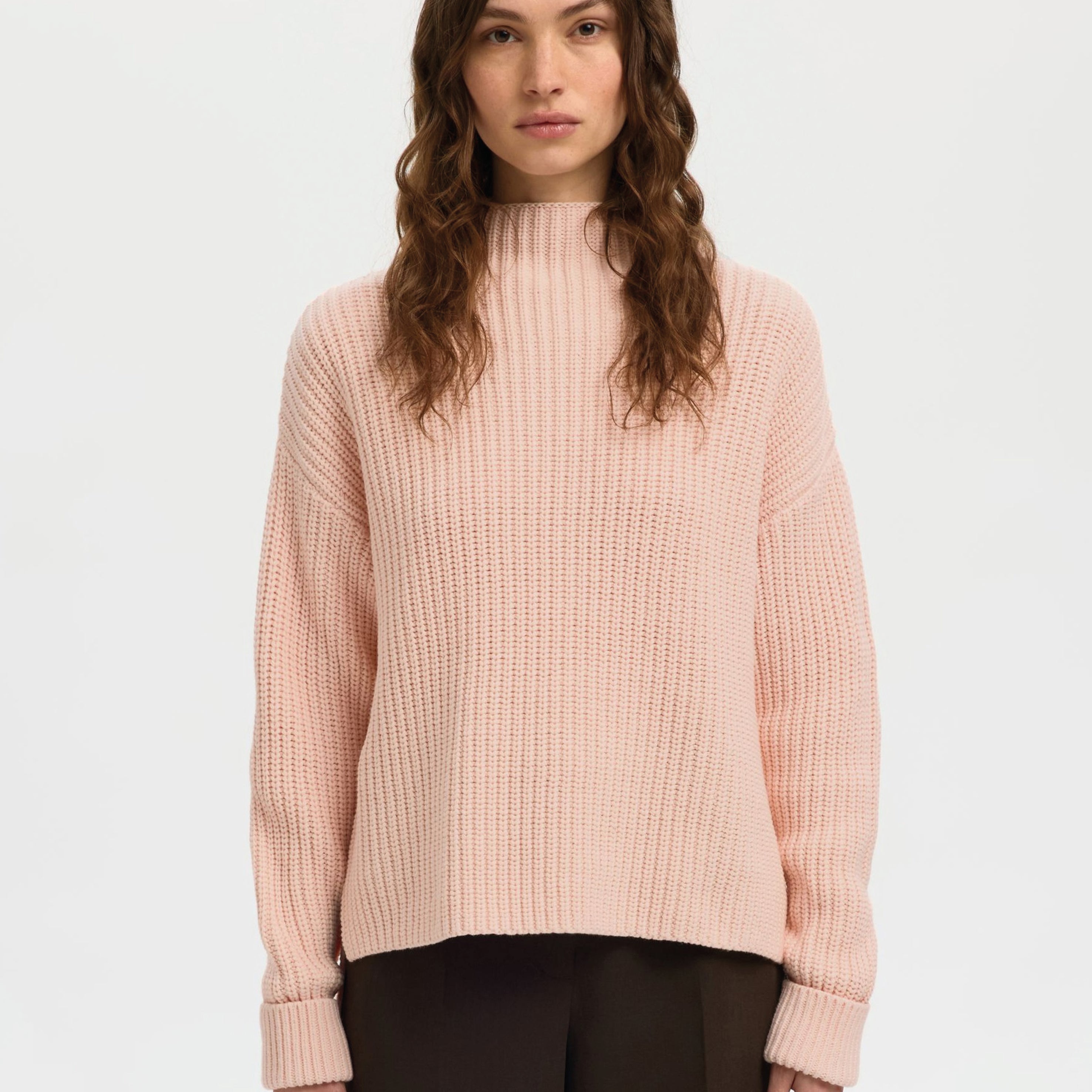 It's time to update your knitwear collection, and what's better than cosying up in an oversized jumper? The dropped shoulders give this Selected Femme Selma Pale Dogwood Knit a super relaxed look that complements the turned-up cuffs and slouchy effect of the high-low hemline. The wide funnel neck looks chic and keeps you warm at the same time. Style yours with mom jeans in a dark wash and a pair of chunky trainers.