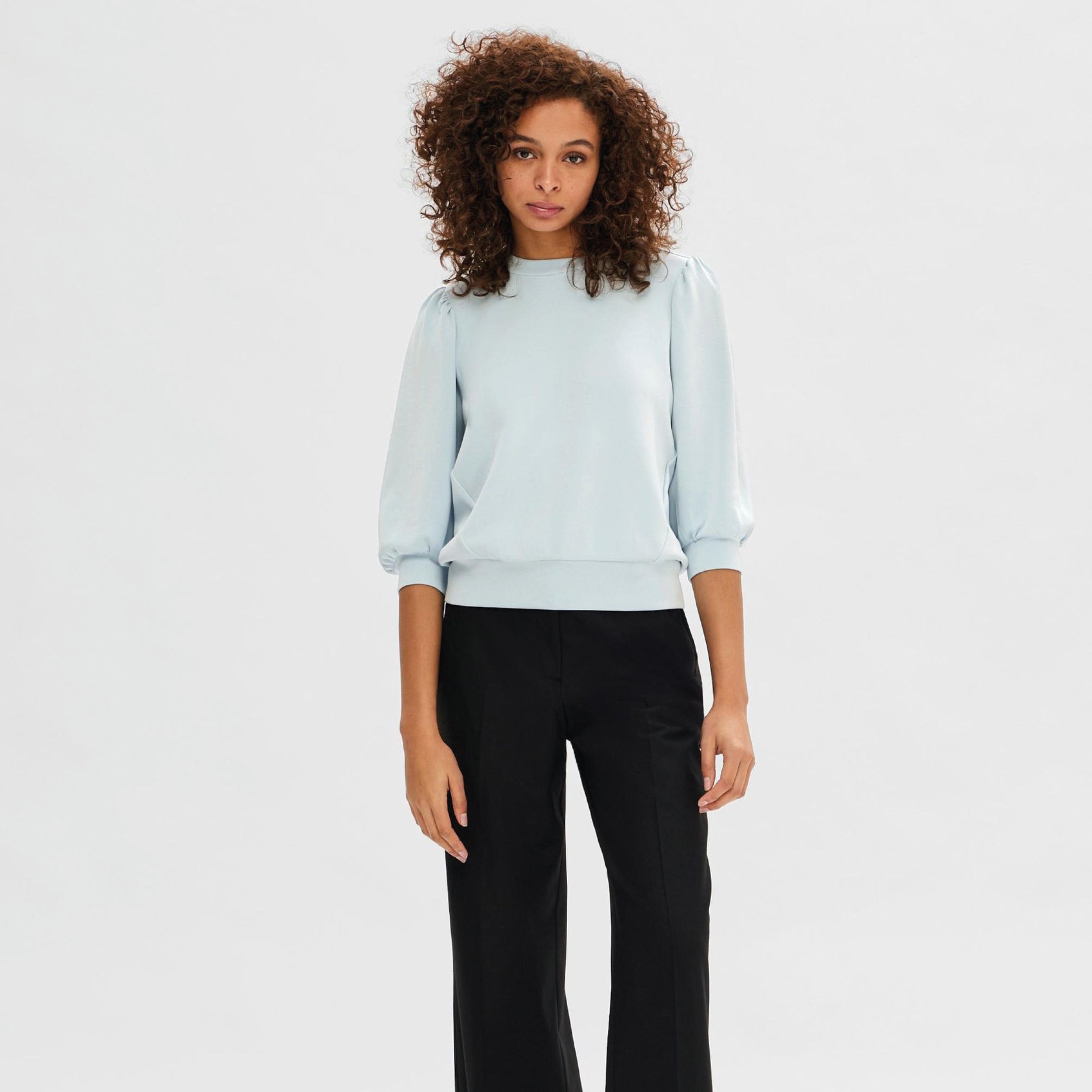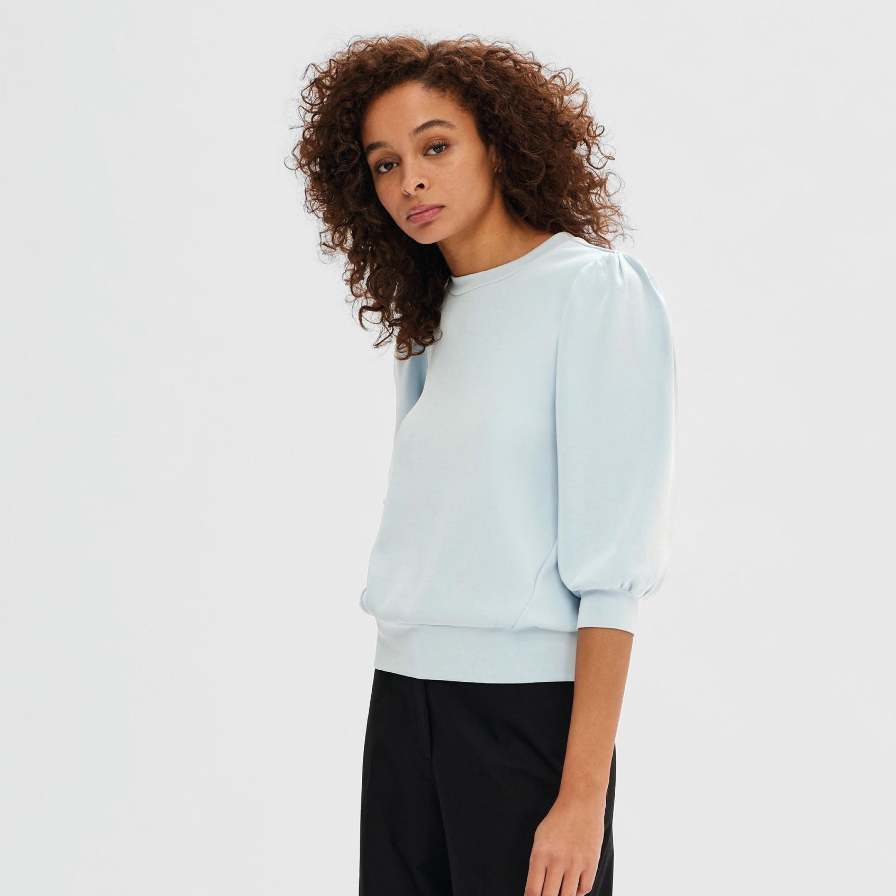 Selected Femme Tenny Cashmere Blue Puff Sleeve Sweatshirt