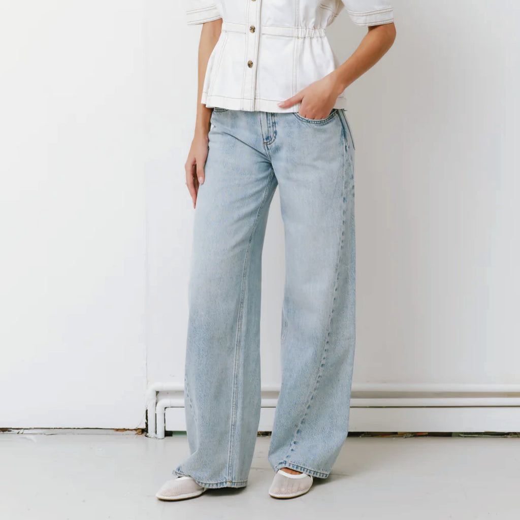 The Seventy + Mochi Austin Gracie Twisted Jeans are the same relaxed, slouchy wide leg gracie jean but with a unique twisted side seam.