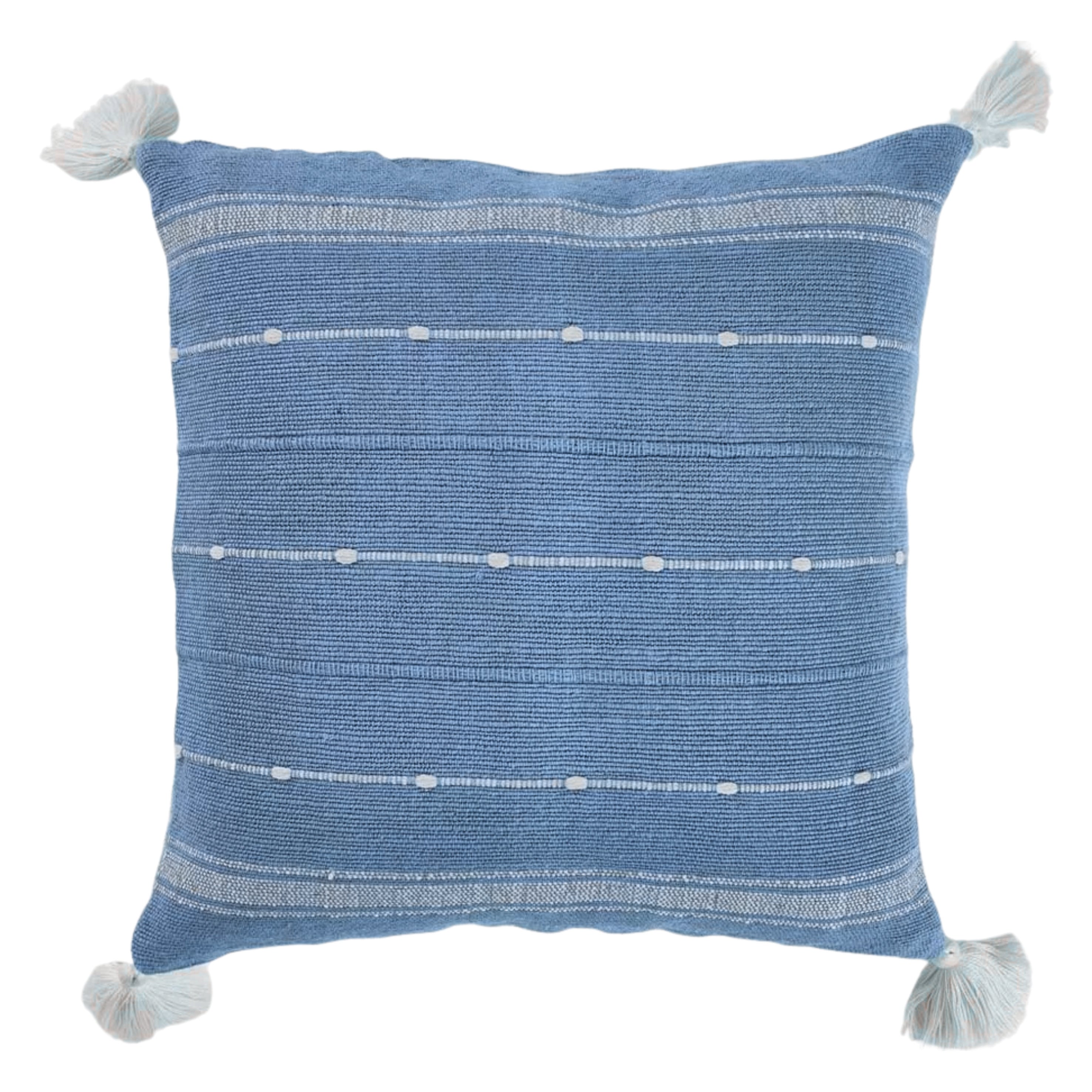 The vibrant Sky Blue Tassel Cushion feature lovely soft tassels and a slub yarn weave in a discreet striped design.