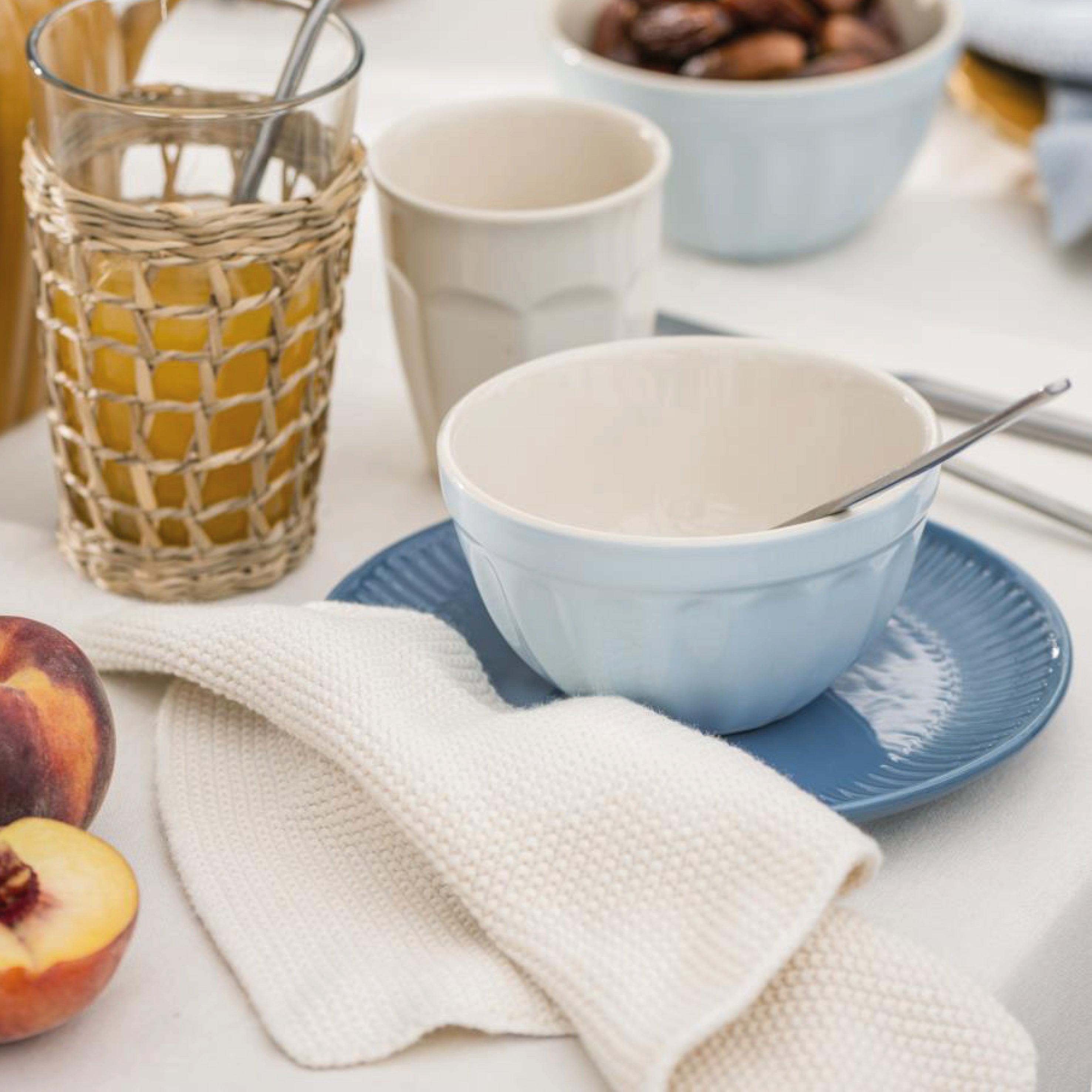 This beautiful bowl with its ridged design gives a contemporary yet classic style. The subtle stillwater blue shade will bring joy to your kitchen collection.
