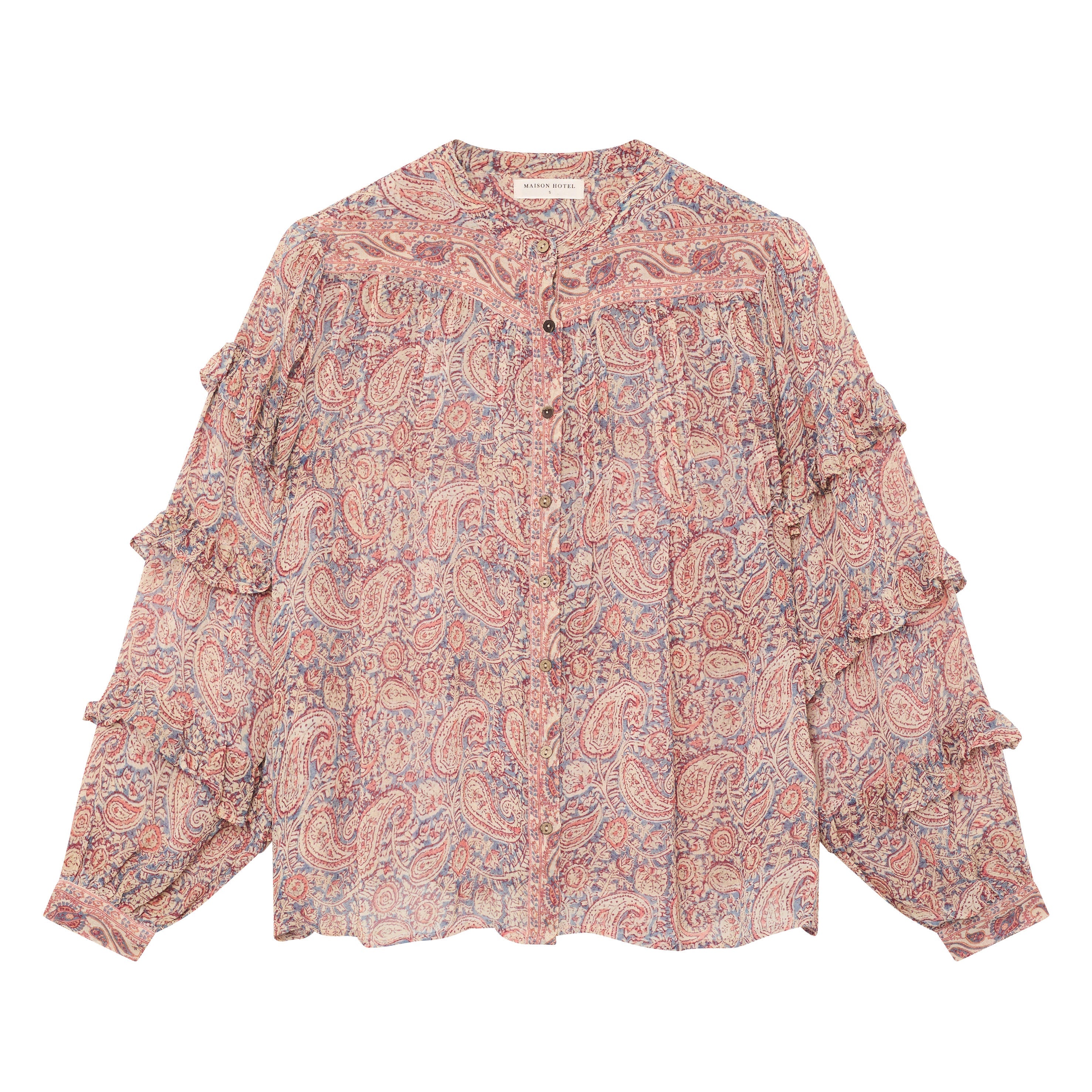 Floaty and expressive, the Maison Hotel Wild Dust Cosima Blouse leans into modern bohemian styling with its oversized fit and delicate ruffle detailing. Light and airy, it pairs beautifully with denim or soft tailoring, making it ideal for relaxed lunches, weekend escapes or effortless everyday dressing.